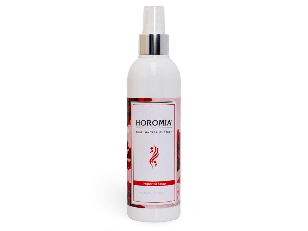 HOROMIA deo Konzentrierter Lufterfrischer Spray s objemom 250 ml a vôňou Imperial Soap. Vyskúšajte ho na odevov v domácnosti na závesoch, sedačke a autosedačkách. Jeho zloženie nezanecháva škvrny a dodáva intenzívnu a pretrvávajúcu vôňu.